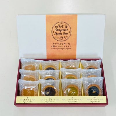 岡山で育った4種類の果実を丁寧にコンフィチュールに仕上げ、タルト生地に入れて焼き上げました。 しっとりとしたタルトに濃厚なコンフィチュールの美味しさが合わさり、果実感が口いっぱいに広がります。 一箱で4種類のおかやま果実それぞれの美味しさを味わって頂ける、食べきりサイズの可愛いタルトです。ギフト用の12個箱が登場!!