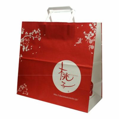 弊社ブランド『おかやま桃子』のロゴが入った赤色の紙袋です。